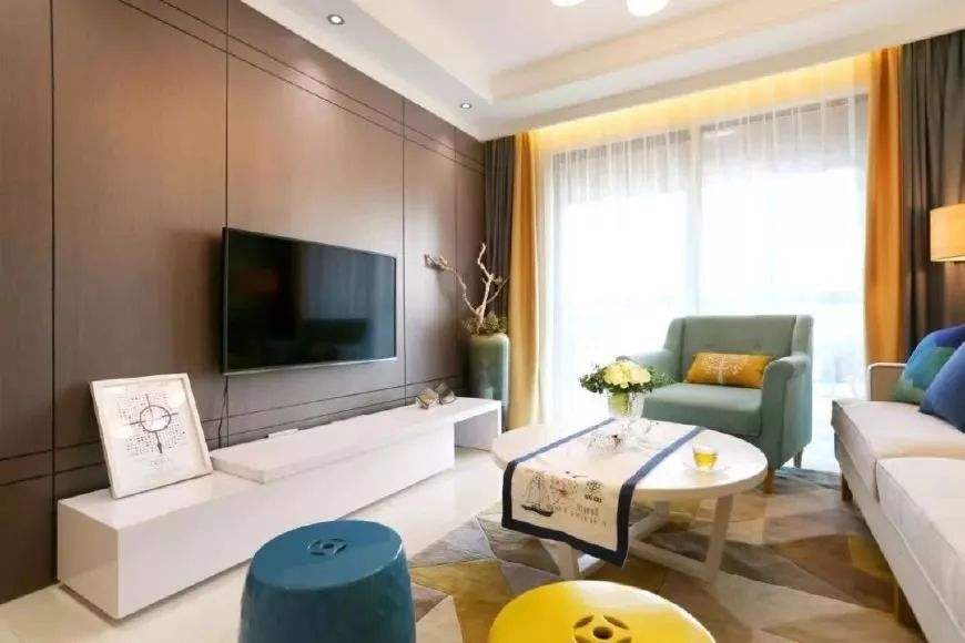 通過墻上的彩色不銹鋼板裝飾,其他家具和其他部分輔以裝飾,可以為整個客廳的裝飾起到畫龍點睛的作用。